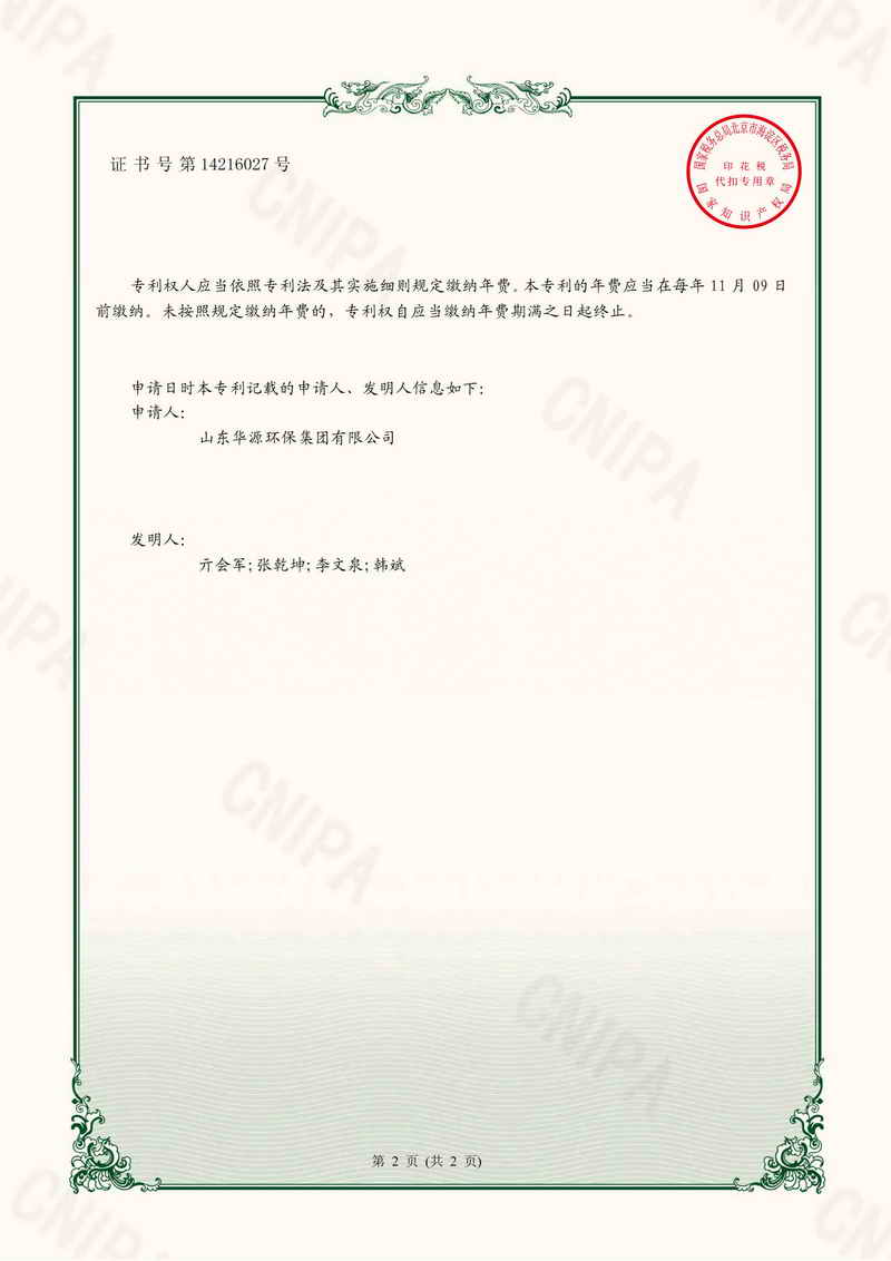 專利證書基于鋁灰生產速凝劑的反應原料篩分設備